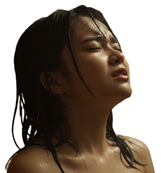カメラマンが執拗にレンズを向け、照明さんがスポットを当て、湯気の中で彼女の白い肌が輝く。