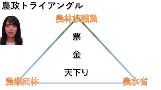 「農水省と農業団体と、農林族の政治家たちが、票と補助金でガッチリつながっている。結局その仕組みがあるせいで、制度が歪んでいる。奴等の企みや、最近の失敗のしわ寄せは農家と国民に来ている。米も高くなるし、現場の人間は疲弊している」