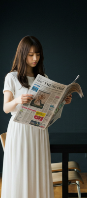 新聞を握る手が震え、彼女は一瞬目を閉じる。