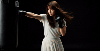 彼女は小さく頷き、サンドバッグの周りを動きながら、左右に揺さぶりをかけ、斜めや横から拳を打ち込む。