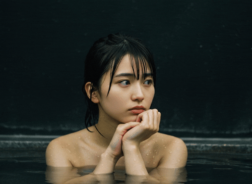 ショートカットの髪、強い眼差し、シンプルでカジュアルな服装。