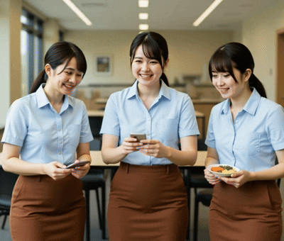 派遣社員の莉緒、葉月、千尋は、いつものように同じメニューを注文し、仲良くランチを取る。