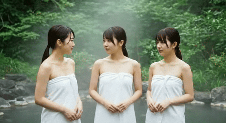 莉緒、葉月、千尋は、バスタオルを握りしめ、互いの顔を見つめる。